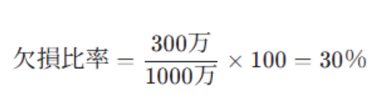 この赤字が資本金に対してどのくらいの割合かを計算するのが「欠損比率」です。