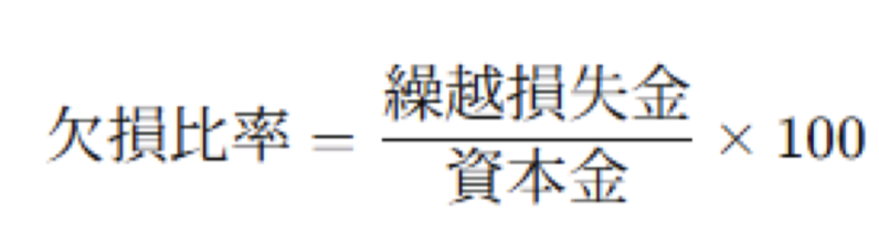 このように、会社の累積赤字が資本金をどれだけ削っているかを示すのが欠損比率です。